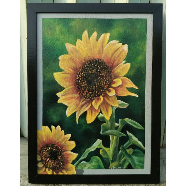 ln lukisan kanvas cat minyak diy gambar bunga matahari 40x30cm.